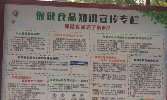 广东省佛山市建立首个食品药品安全主题公园。开展整治工作,需要广泛、长期的宣传教育。广泛宣传如何防范食品、保健食品欺诈和虚假宣传,如何避免保健食品非法宣传陷阱,同时还对《食品安全法》解读、健康的生活饮食方式等方面进行科普宣传,帮助消费者特别是老年消费者解答和走出在保健食品消费方面存在的疑问和误区,在潜移默化中提高消费者的食品安全科普知识知晓率和消费防范意识。目前,主题公园已完成一期建设,共设置21个食品安全宣传栏架,共计38个版面,让市民在游玩、散步、健身、赏景的过程中学到更多的食品安全知识,增强食品安全意识。