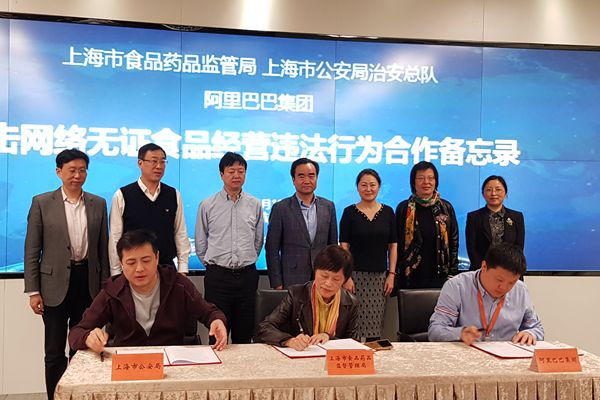 上海市食药监局、市公安局与阿里巴巴签署打击网络无证食品经营违法行为合作备忘录